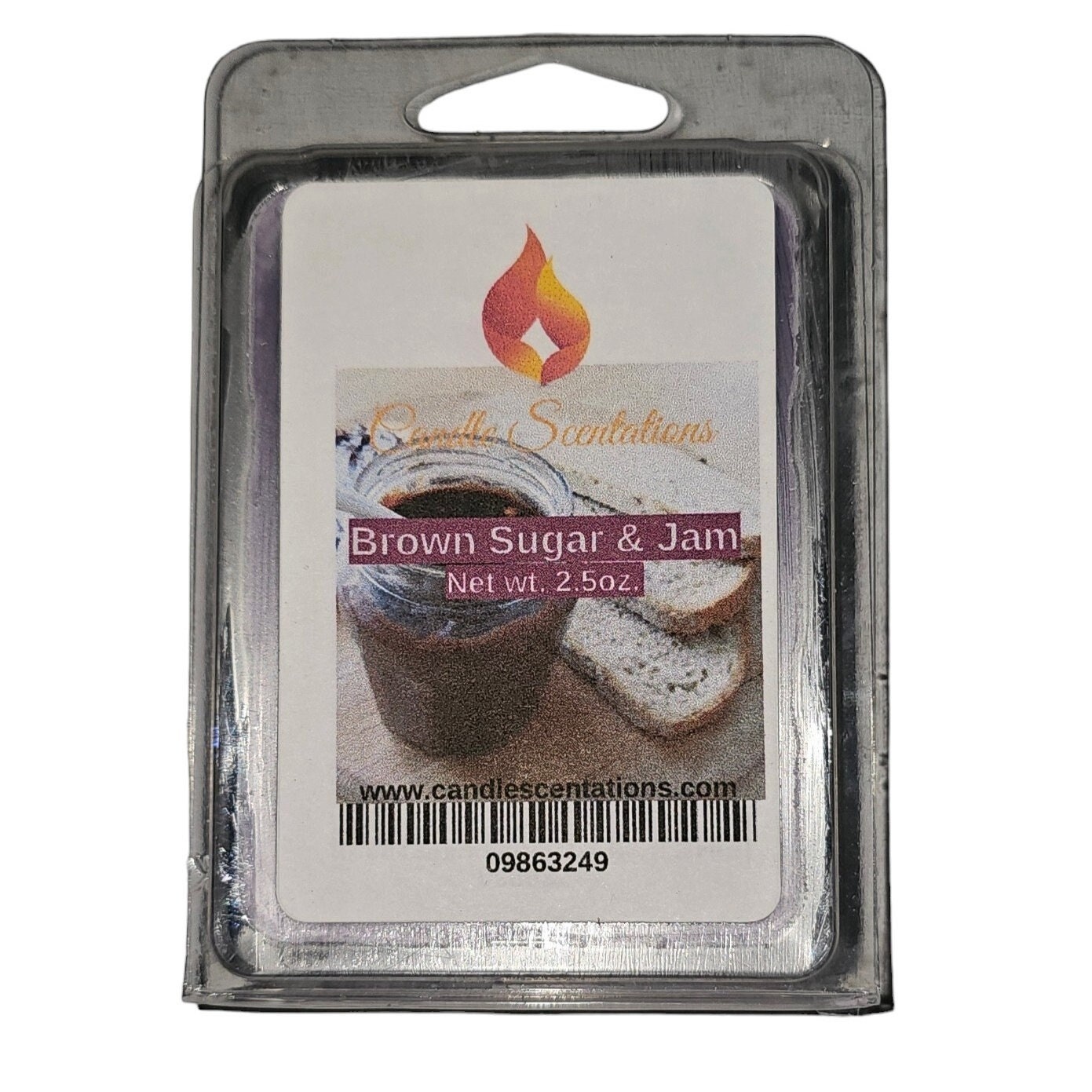 Experience the sweet, inviting aroma of Brown Sugar Jam wax melts. Our hand-crafted brown sugar and fig blend with cran-apple marmalade will fill any room with a warm and cozy scent. Enjoy up to 16 hours of burn time with this 2.5 oz. Wax melts.