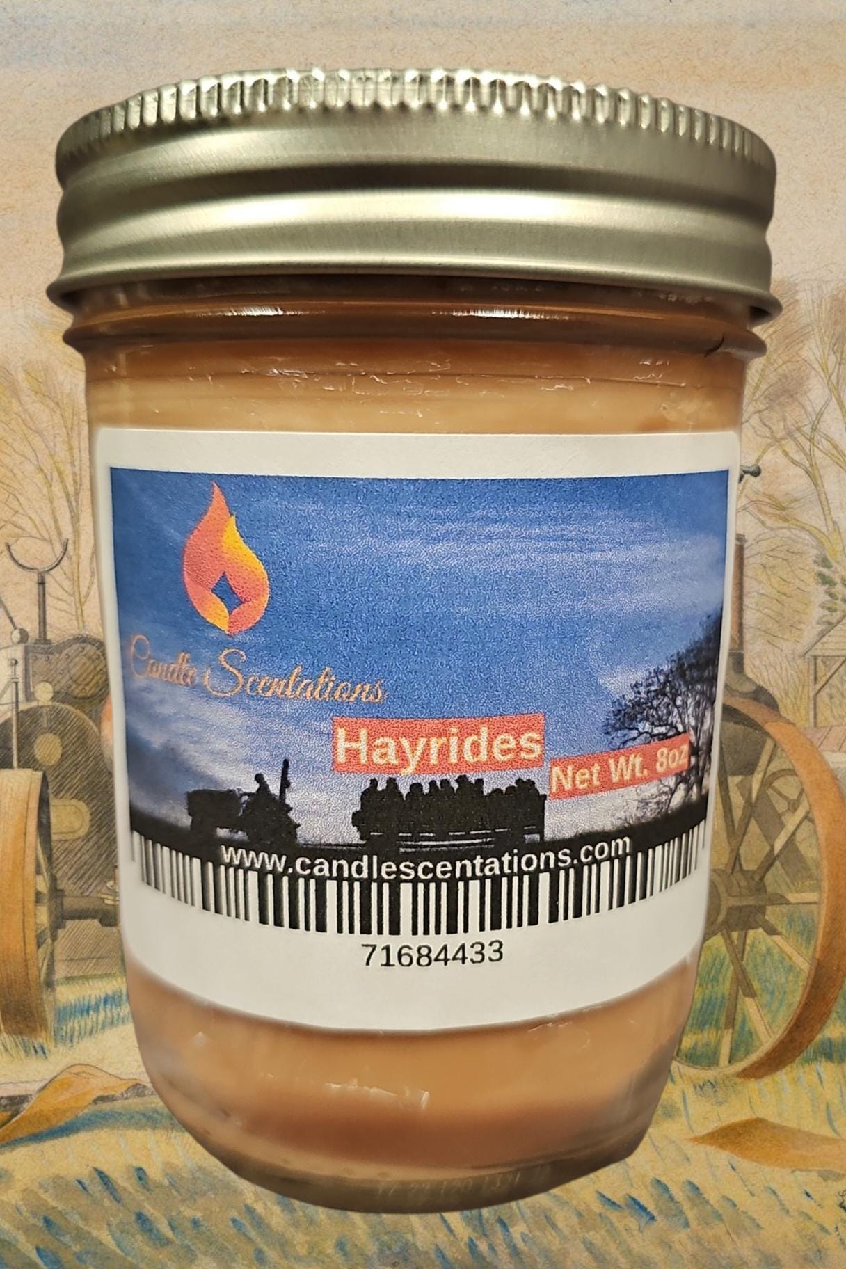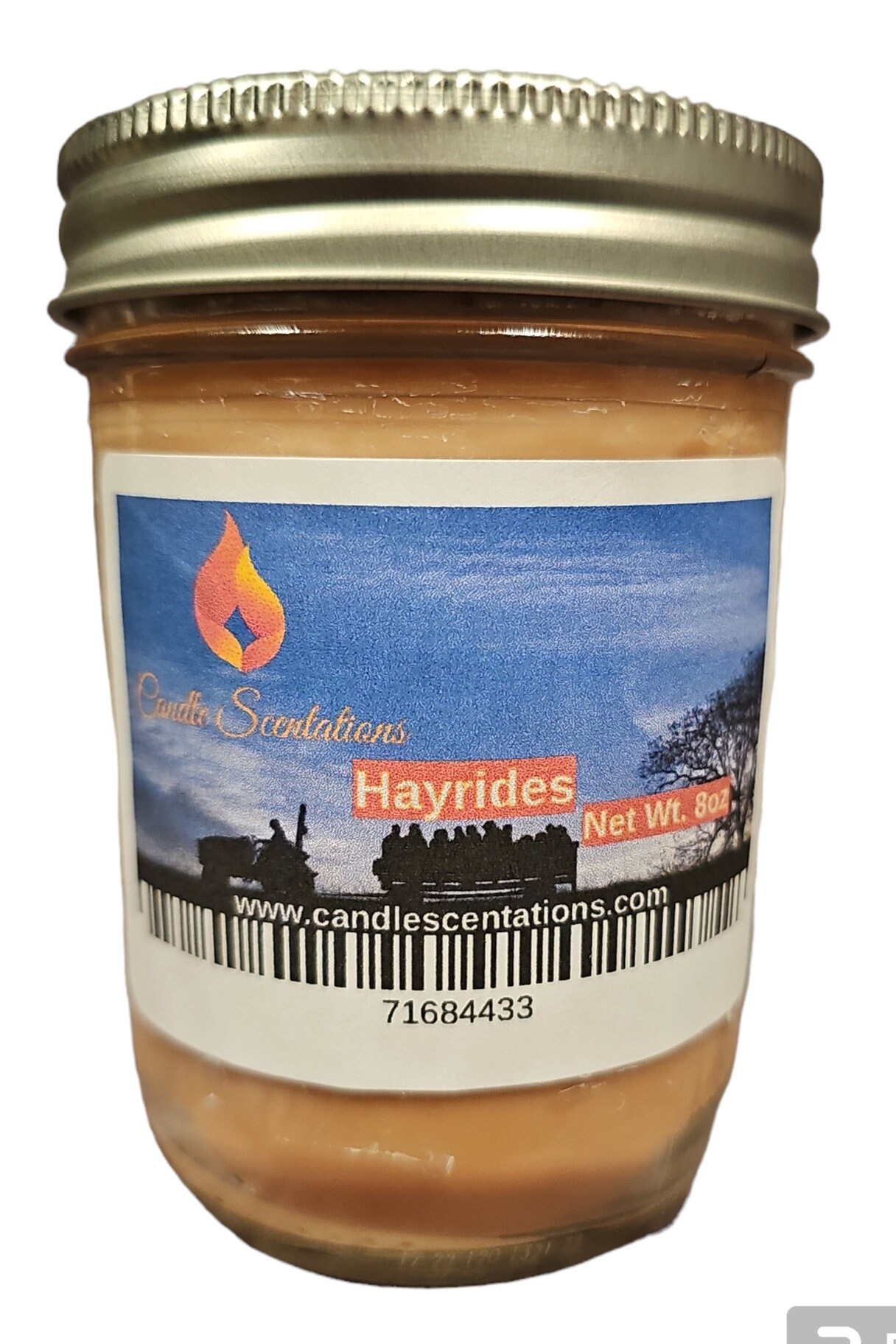 Enjoy the pleasant fragrances of fall with our Hayride 8oz. Candle. This long-lasting candle features inviting scents of Hayride, teal pumpkin, spiced vanilla, green cardamom, fall air, and sandalwood. Perfect for any season, this candle will surely fill your home with the enchanting aromas of the season.