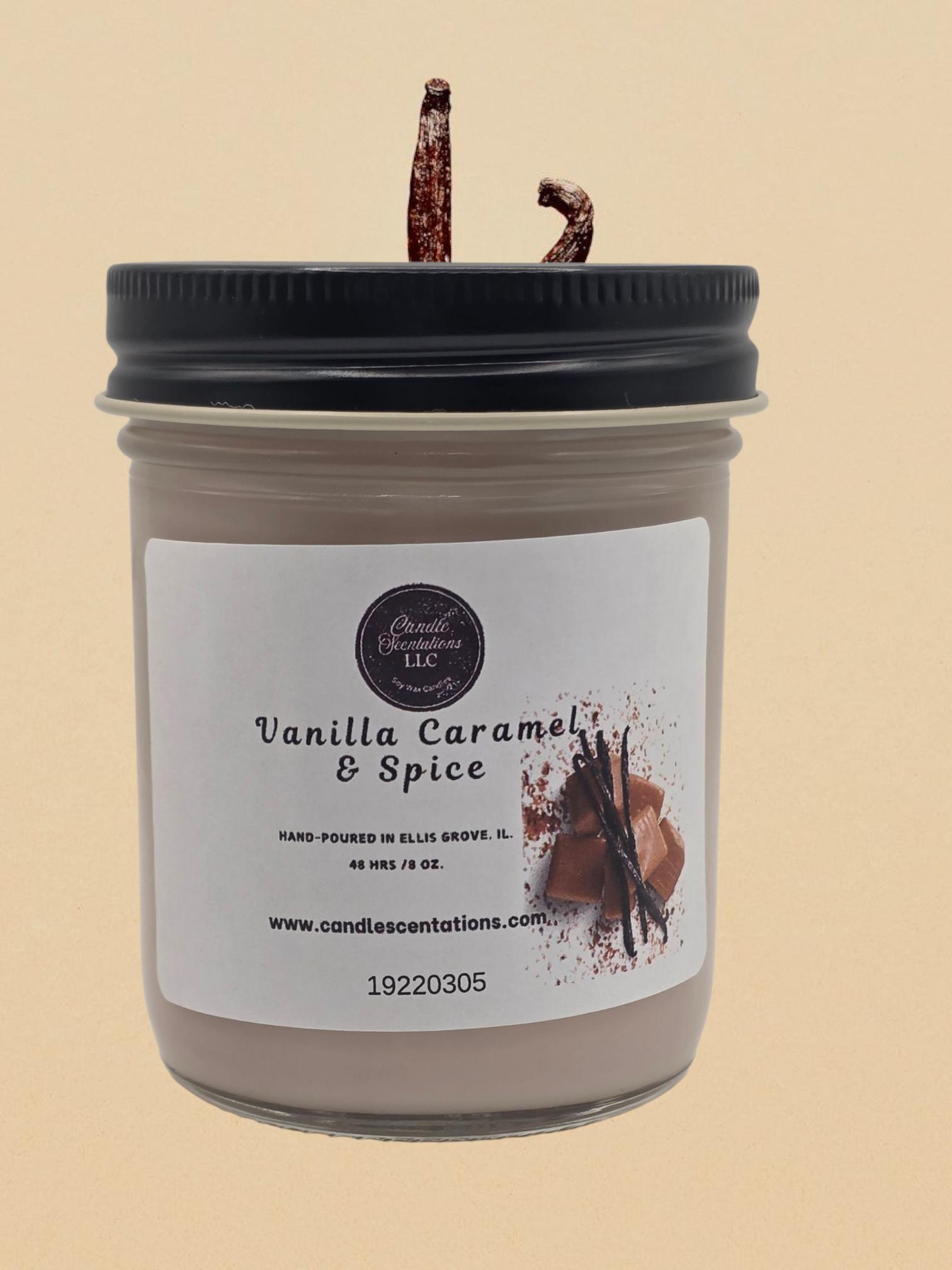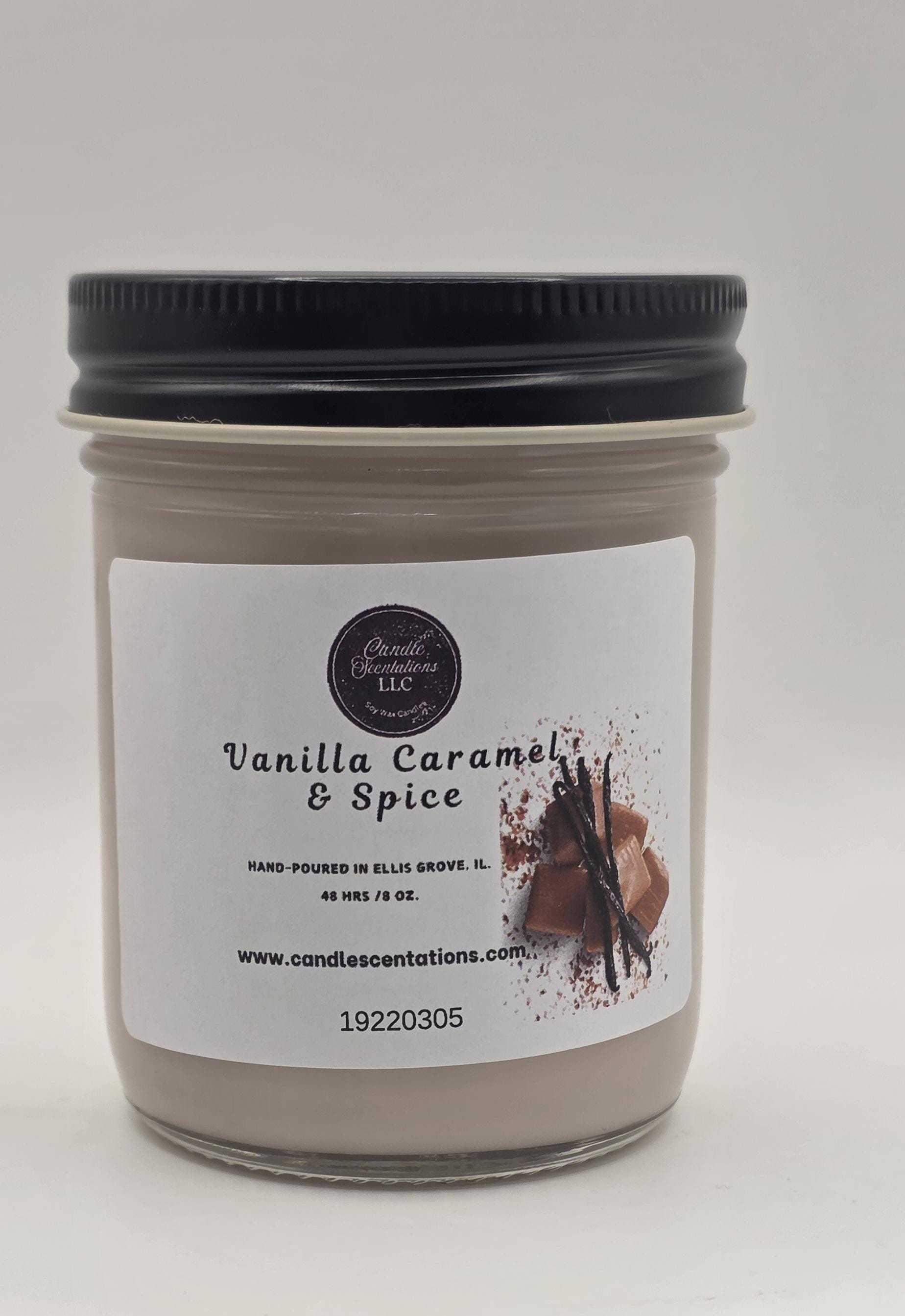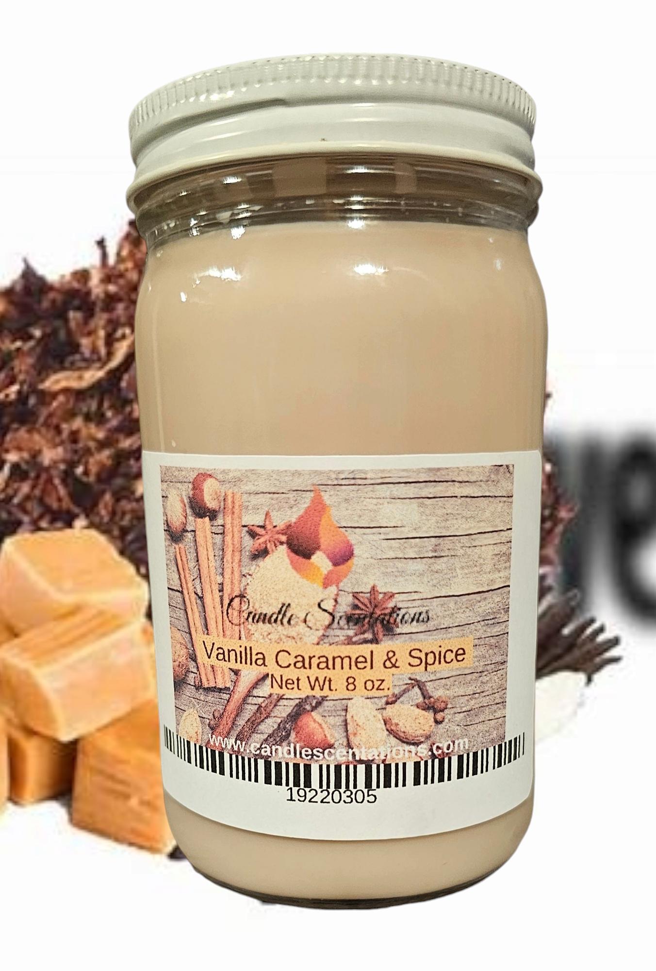 Enjoy the sweet aroma of vanilla caramel & spice with this 8 oz. candle. Carefully crafted with natural wax and quality fragrance oil, it will fill your home with a delightful scent. Perfect as a gift or for your own enjoyment.