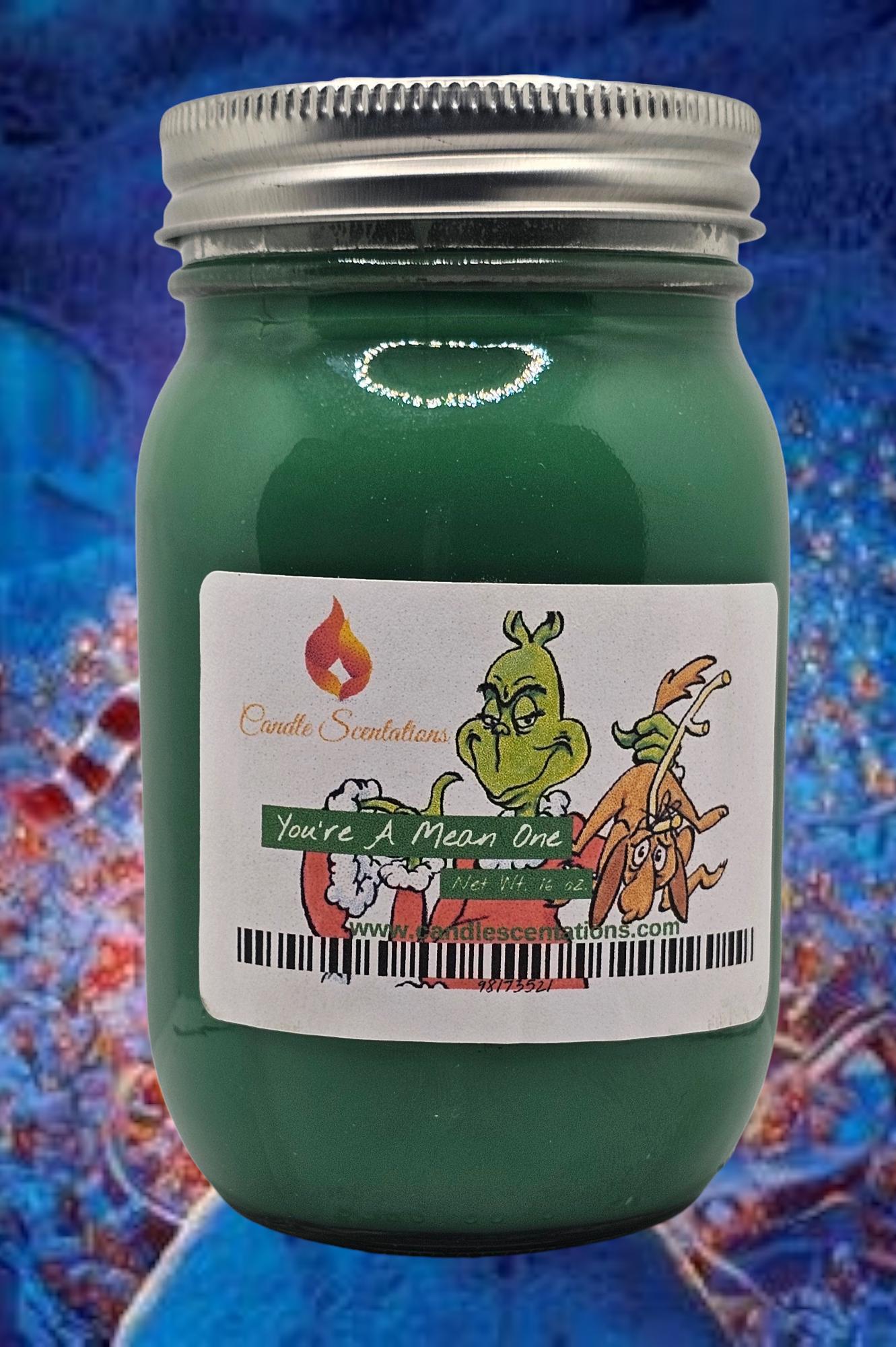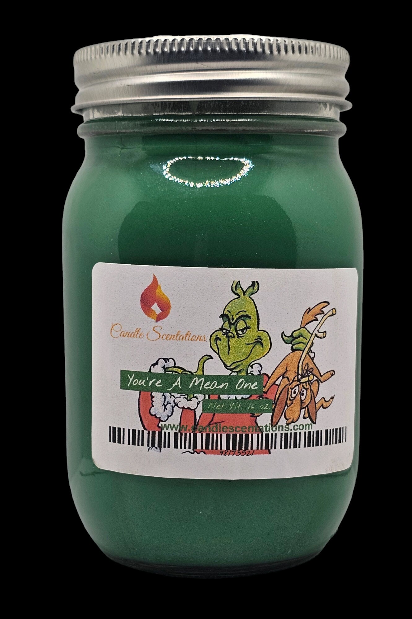 This You're A Mean One candle features a captivating blend of top notes of citrus, cinnamon, eucalyptus, blue sage, amber, and tonka; middle notes of geranium, lily, and rose; and base notes of patchouli, vetiver, and tonka beans. Its complex mix of fragrances will provide a delightfully warm atmosphere sure to make any home feel cozy.