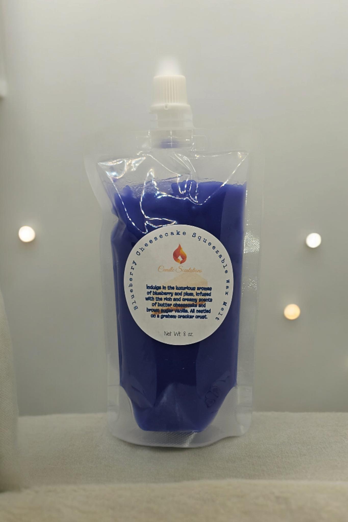 Indulge in the luxurious aromas of blueberry and plum, infused with the rich and creamy scents of butter cheesecake and brown sugar vanilla. All nestled on a graham cracker crust, our 8oz Blueberry Cheesecake Squeezable Wax Melt will fill your home with sophisticated and exclusive fragrances.