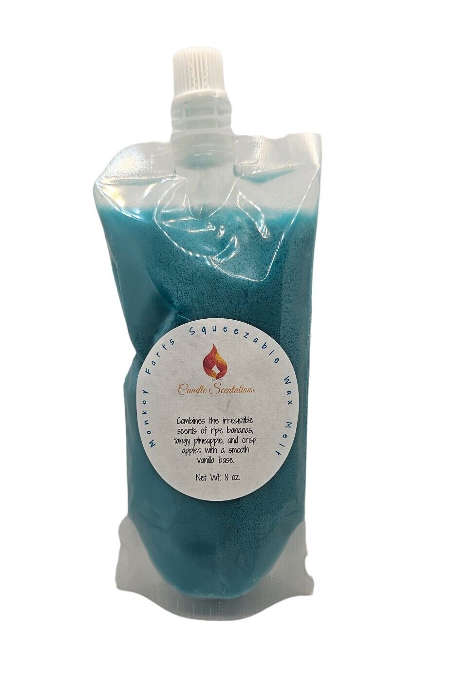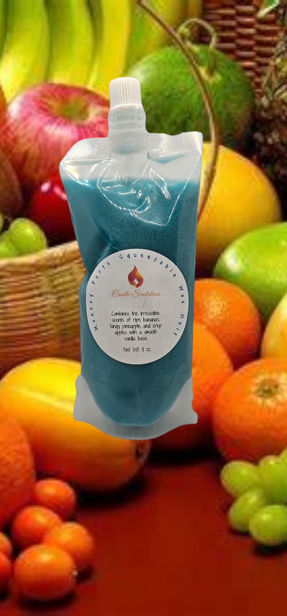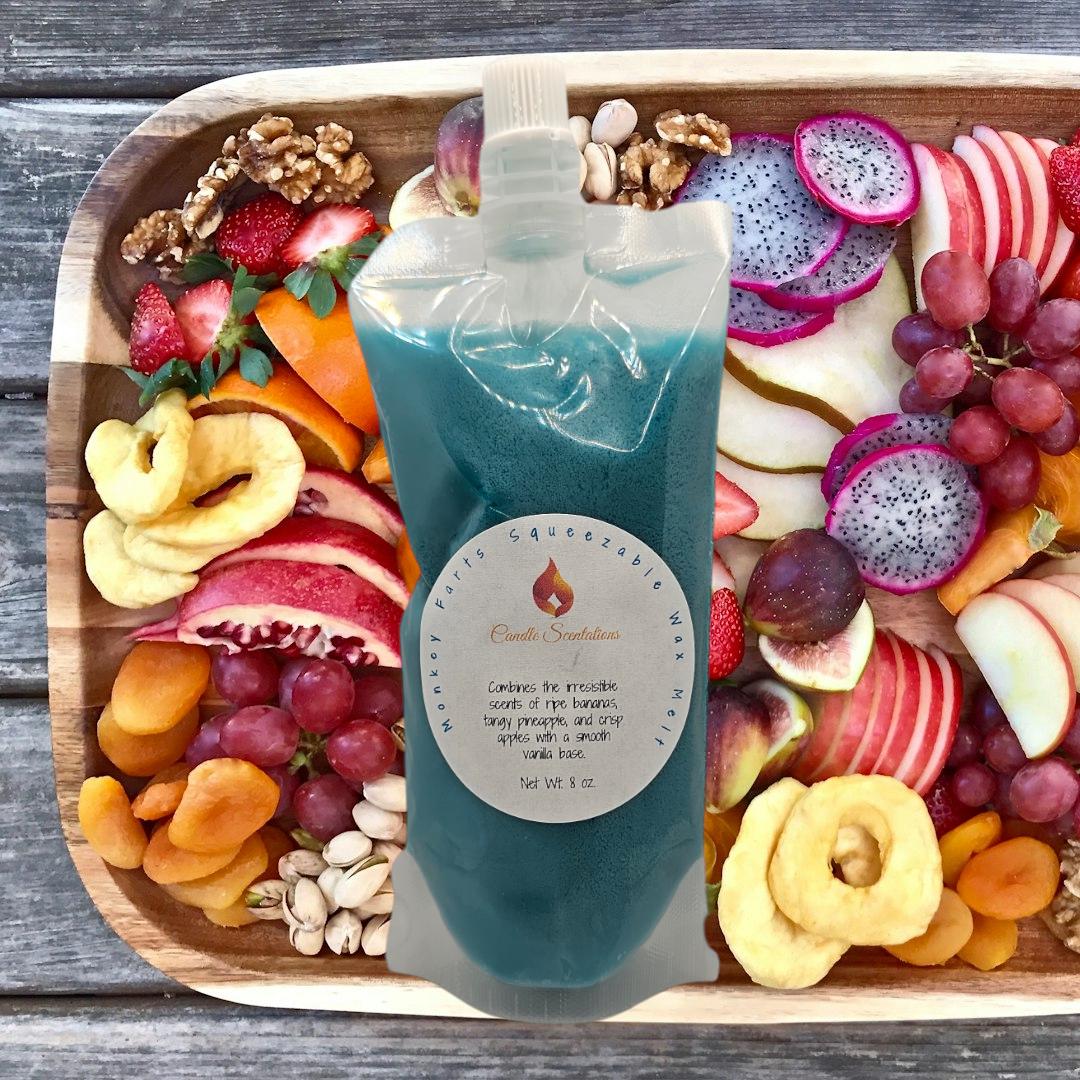 This 8 oz. Monkey Farts Squeezable Wax Melt combines the irresistible scents of ripe bananas, tangy pineapple, and crisp apples with a smooth vanilla base. Enjoy the delightful and playful fragrance throughout your home.