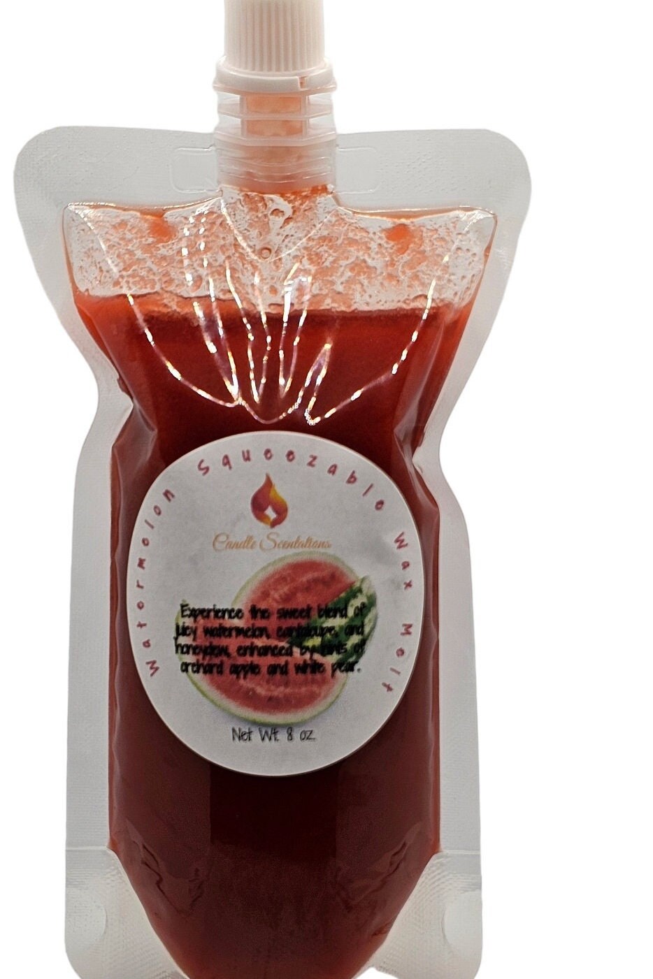 Indulge in the luscious aroma of our Watermelon Squeezable Wax Melt. Experience the sweet blend of juicy watermelon, cantaloupe, and honeydew, enhanced by hints of orchard apple and white pear. Our 8 oz. wax melt offers a luxurious and exclusive fragrance that will fill your home with elegance.