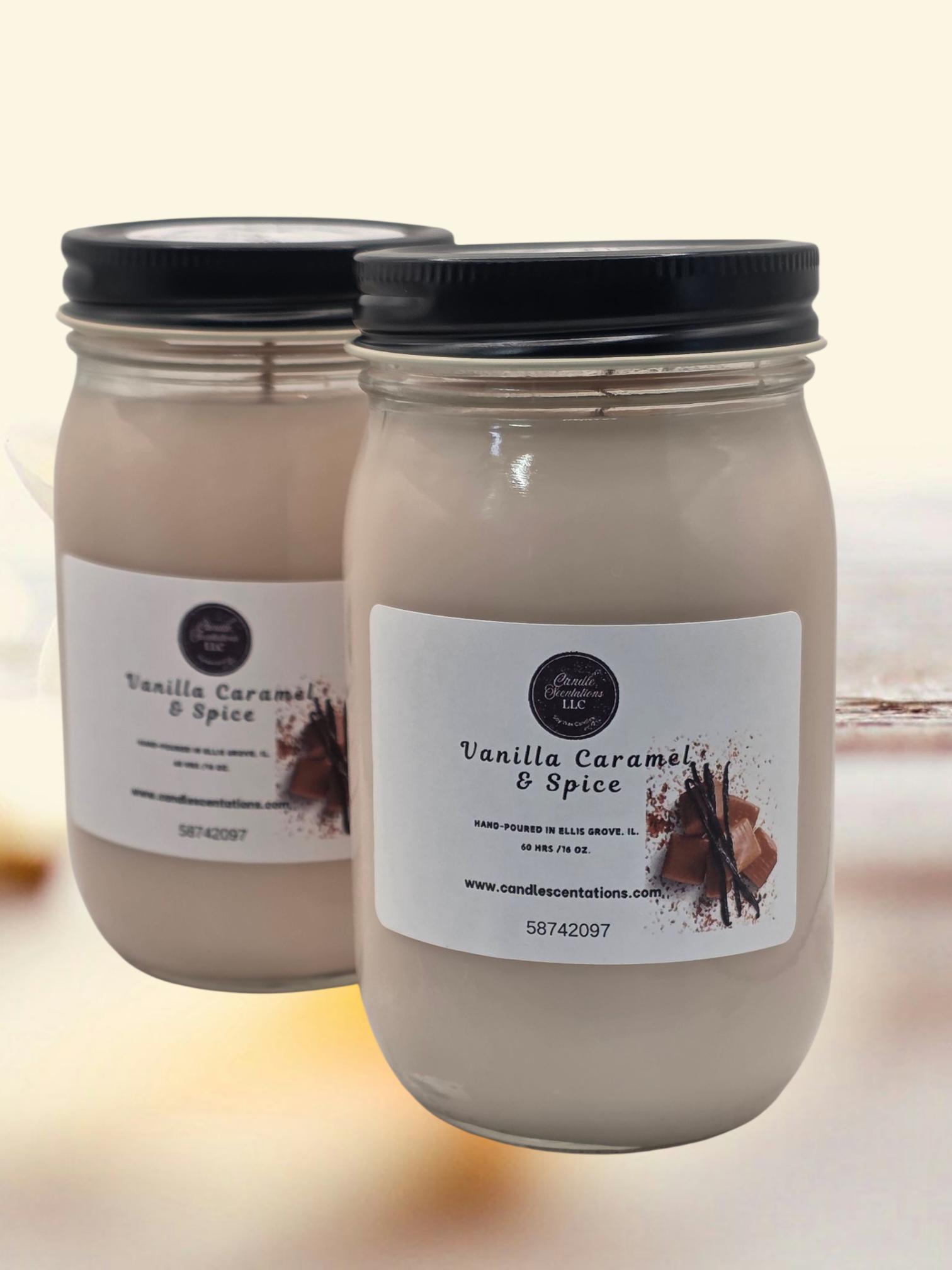 Indulge in pure decadence with our Vanilla Caramel & Spice 16oz. Candle. This gourmand scent combines the rich sweetness of vanilla bean ice cream and warm salted caramel sauce, with notes of whipped buttercream and sweetly spiced balsam, tonka bean, and vanilla. Elevate your space with this luxurious, irresistible aroma.