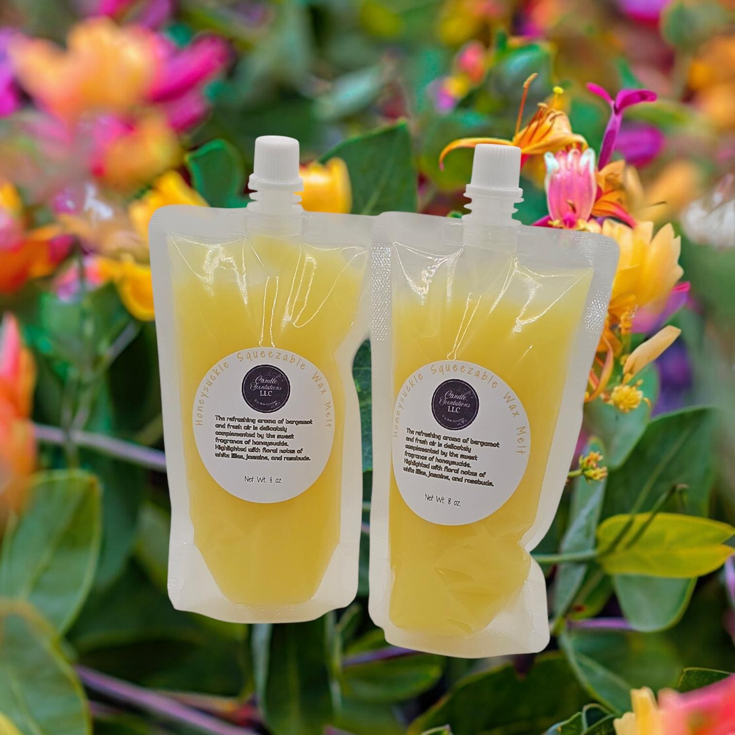 Introducing Honeysuckle 8 oz. Squeezable Wax Melt, where the refreshing aroma of bergamot and fresh air is delicately complemented by the sweet fragrance of honeysuckle. Highlighted with floral notes of white lilies, jasmine, and rosebuds, this wax melt will transport you to a tranquil garden blooming with neroli and green sprouts. Experience luxury and elegance with every melt.