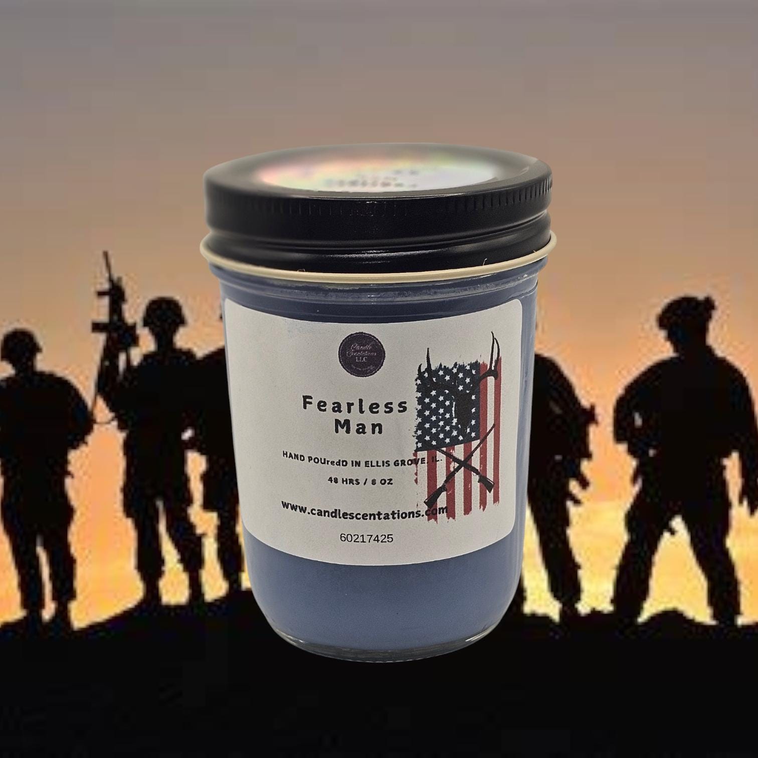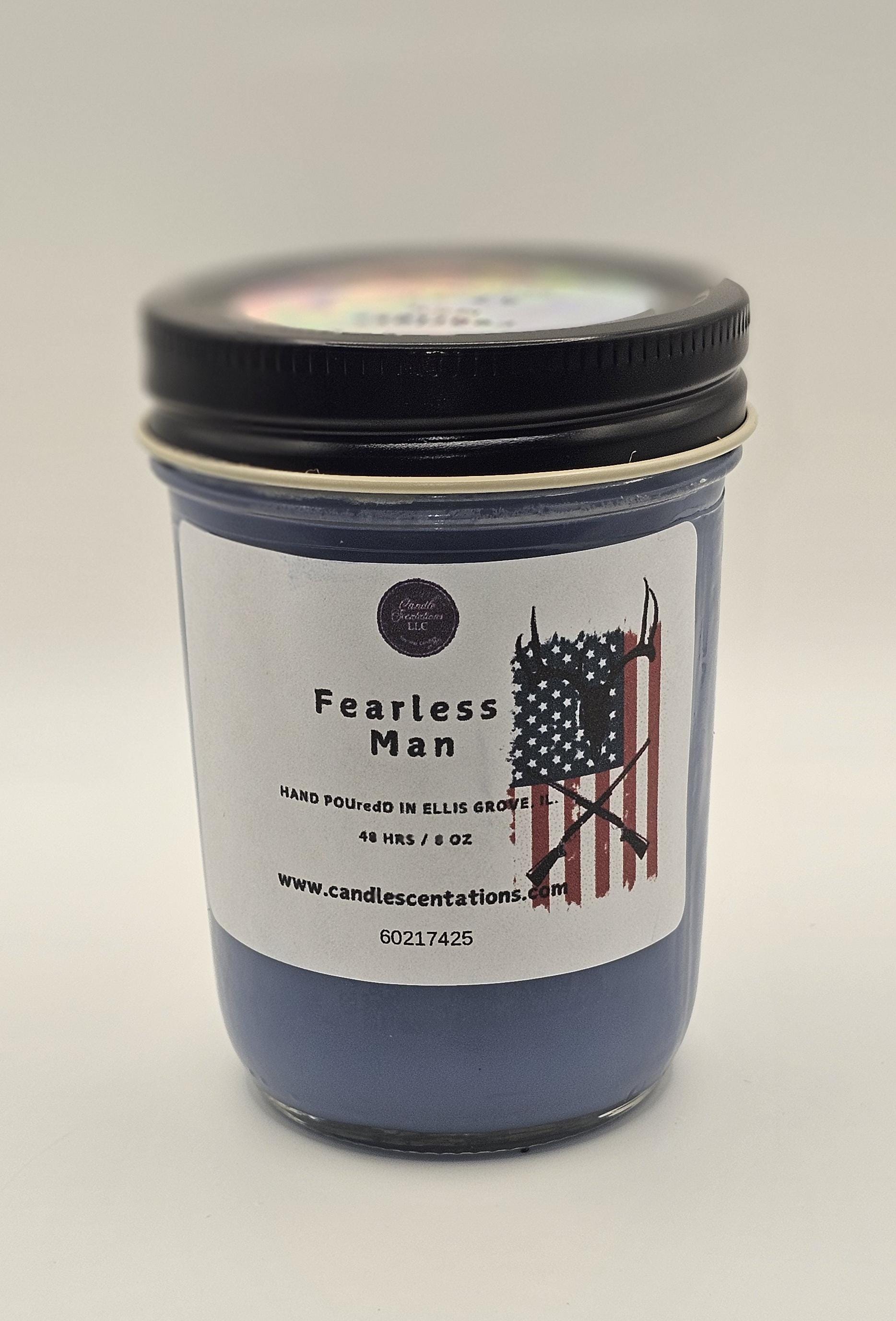 Indulge in the luxurious scent of Fearless Man. This 8 oz. candle features a masculine blend of leather, black currant, and oakmoss. Its unforgettable aroma will captivate your senses, creating an addictive experience unlike any other. Elevate your ambiance with this exclusive men's fine fragrance.