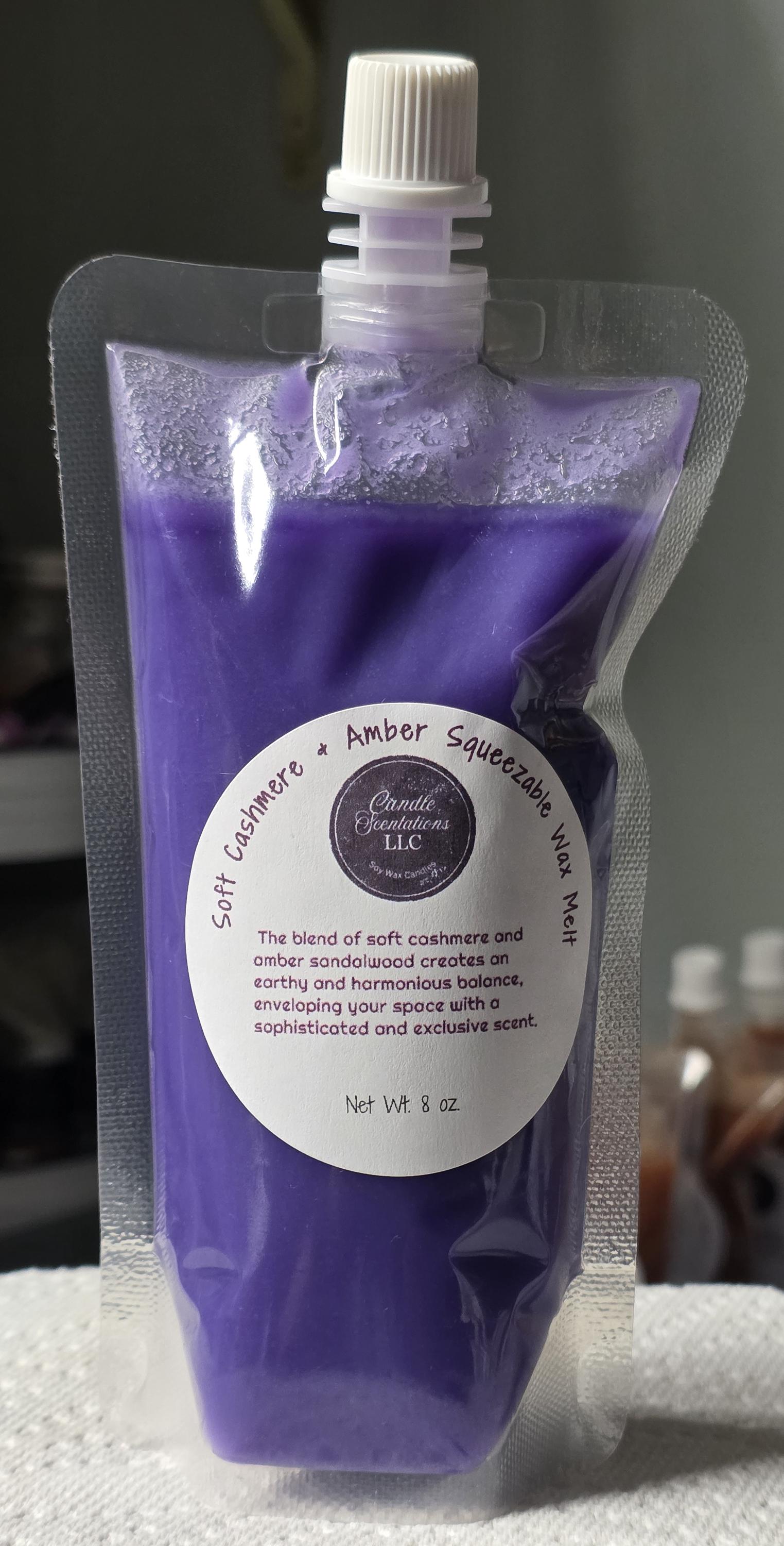 Indulge in the luxurious aroma of our Soft Cashmere & Amber 8 oz. Squeezable Wax Melt. The blend of soft cashmere and amber sandalwood creates an earthy and harmonious balance, enveloping your space with a sophisticated and exclusive scent. Treat yourself to a sensory experience unlike any other.