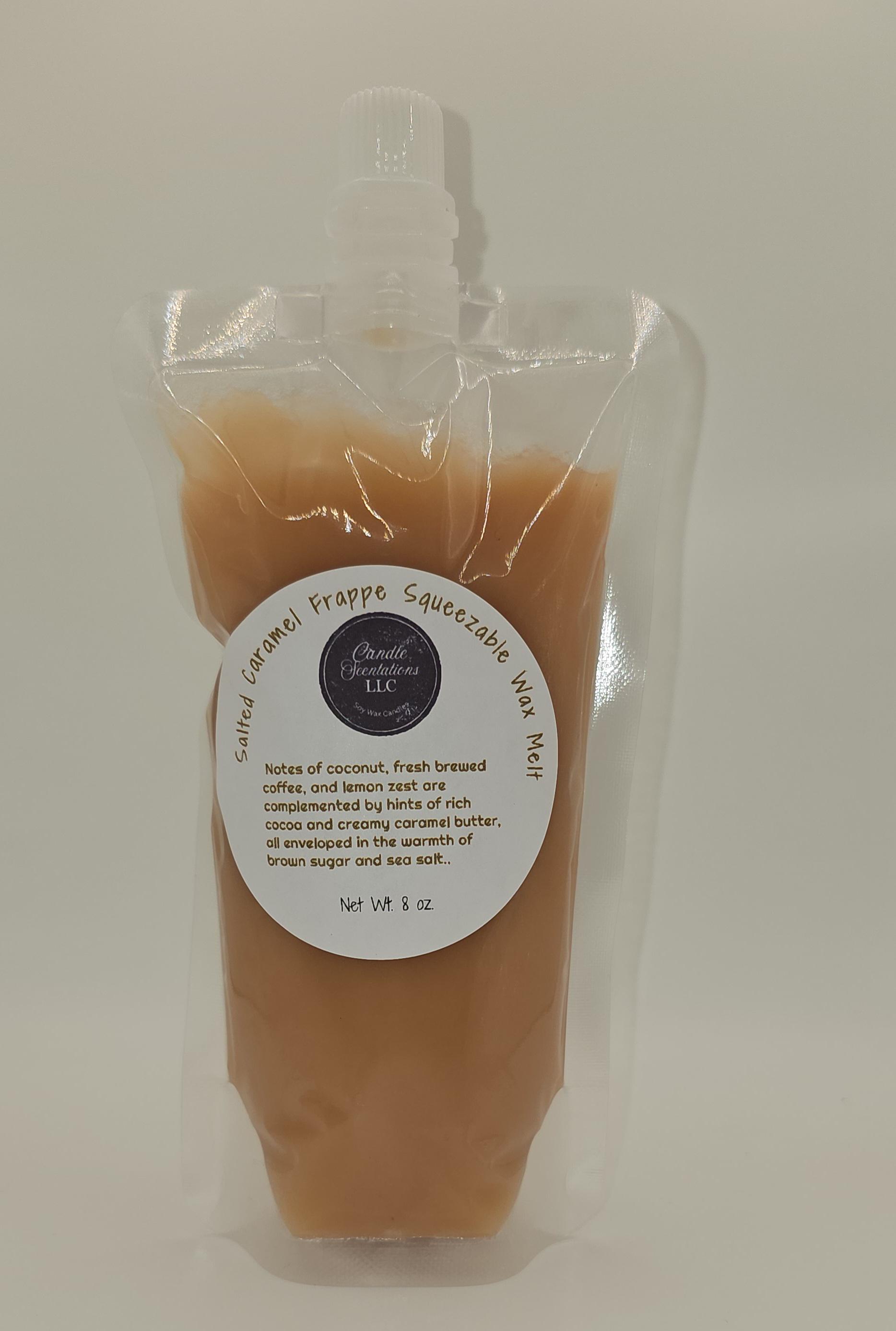 Indulge in the ultimate sensory experience with our Salted Caramel Frappe 8 oz. Squeezable Wax Melt. Notes of coconut, fresh brewed coffee, and lemon zest are complemented by hints of rich cocoa and creamy caramel butter, all enveloped in the warmth of brown sugar and sea salt. Elevate your space with this luxurious scent.