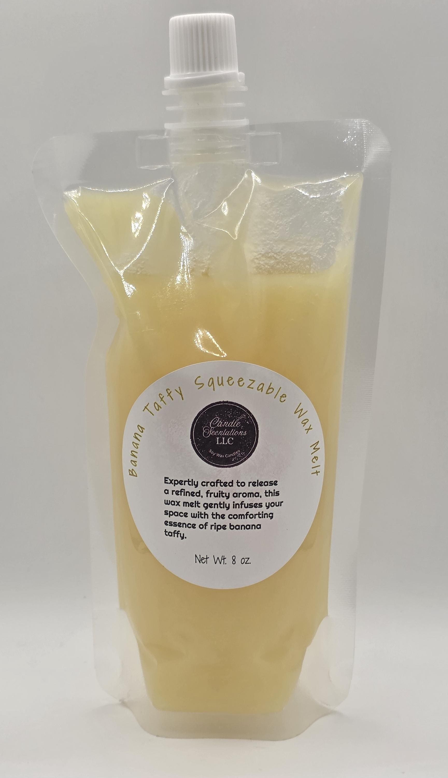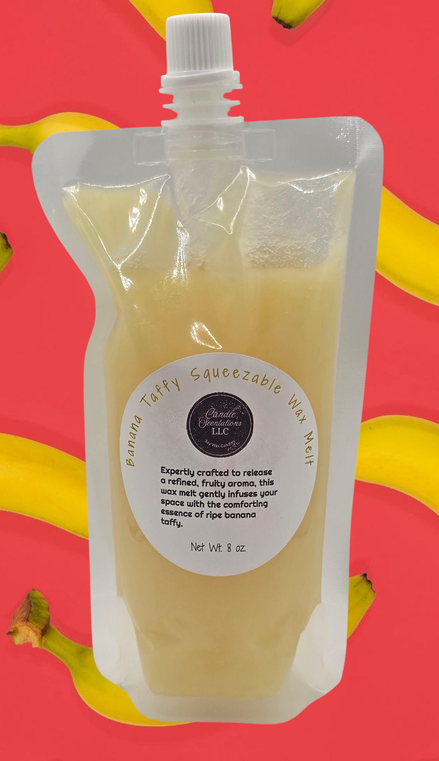 Experience a refined ambiance with the Banana Taffy 8 oz. Squeezable Wax Melt, where the delicate sweetness of ripe banana harmonizes effortlessly with the deep, indulgent notes of rich taffy. This elegant blend gently fills your space, creating a warm and inviting atmosphere that captivates the senses with subtle sophistication.