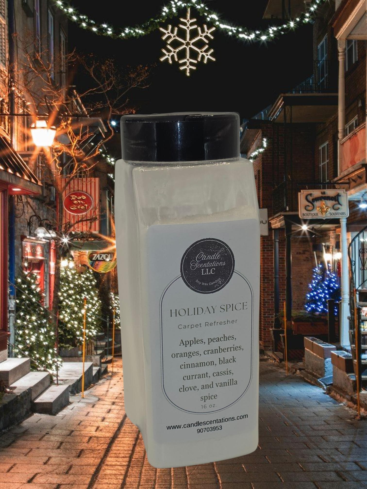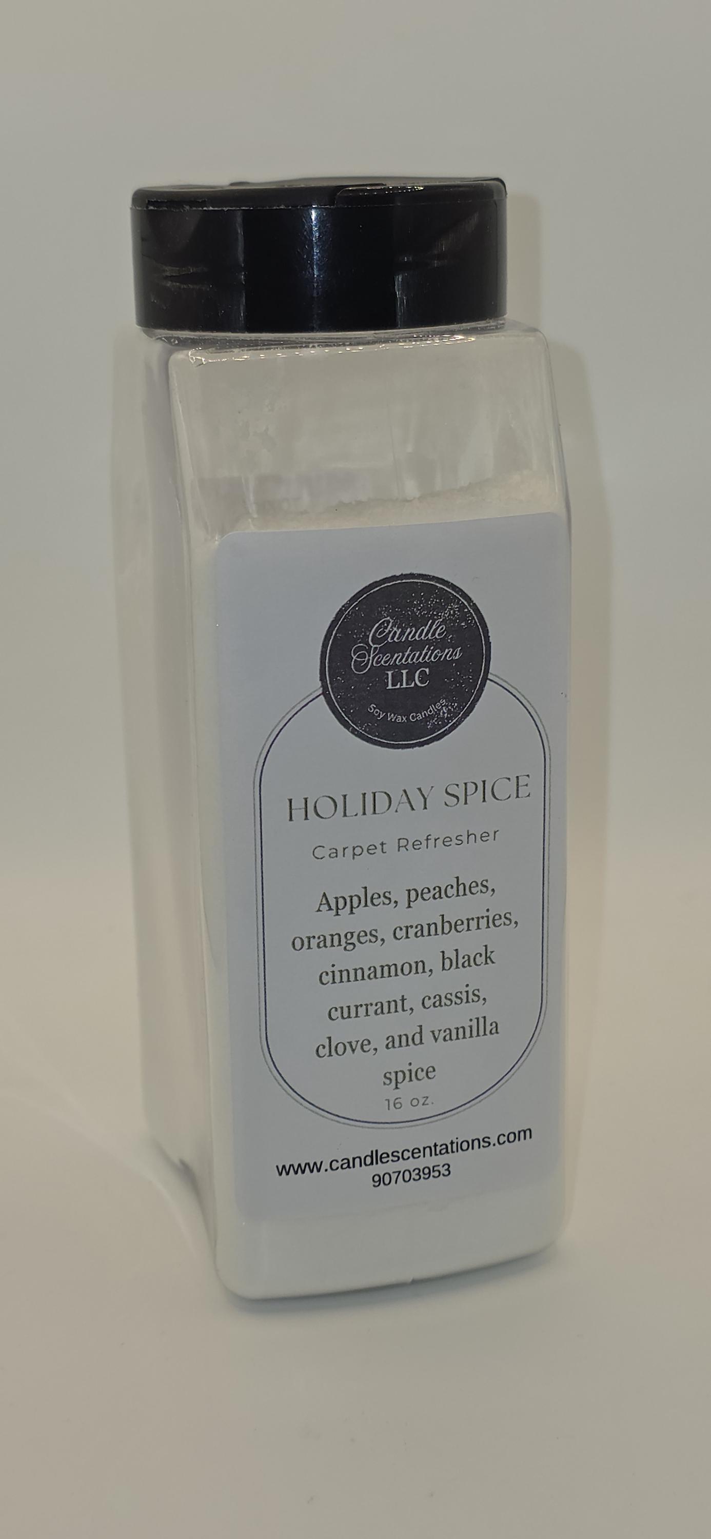 Experience a refined blend of holiday aromas with the Holiday Spice 16 oz. Carpet Refresher. This elegant formula combines notes of crisp apples, ripe peaches, and zesty oranges with the rich depth of cranberries, black currant, and cassis. A warm hint of cinnamon, clove, and vanilla spice delicately enhances your carpets, leaving a sophisticated and inviting fragrance that transforms your space for the season.