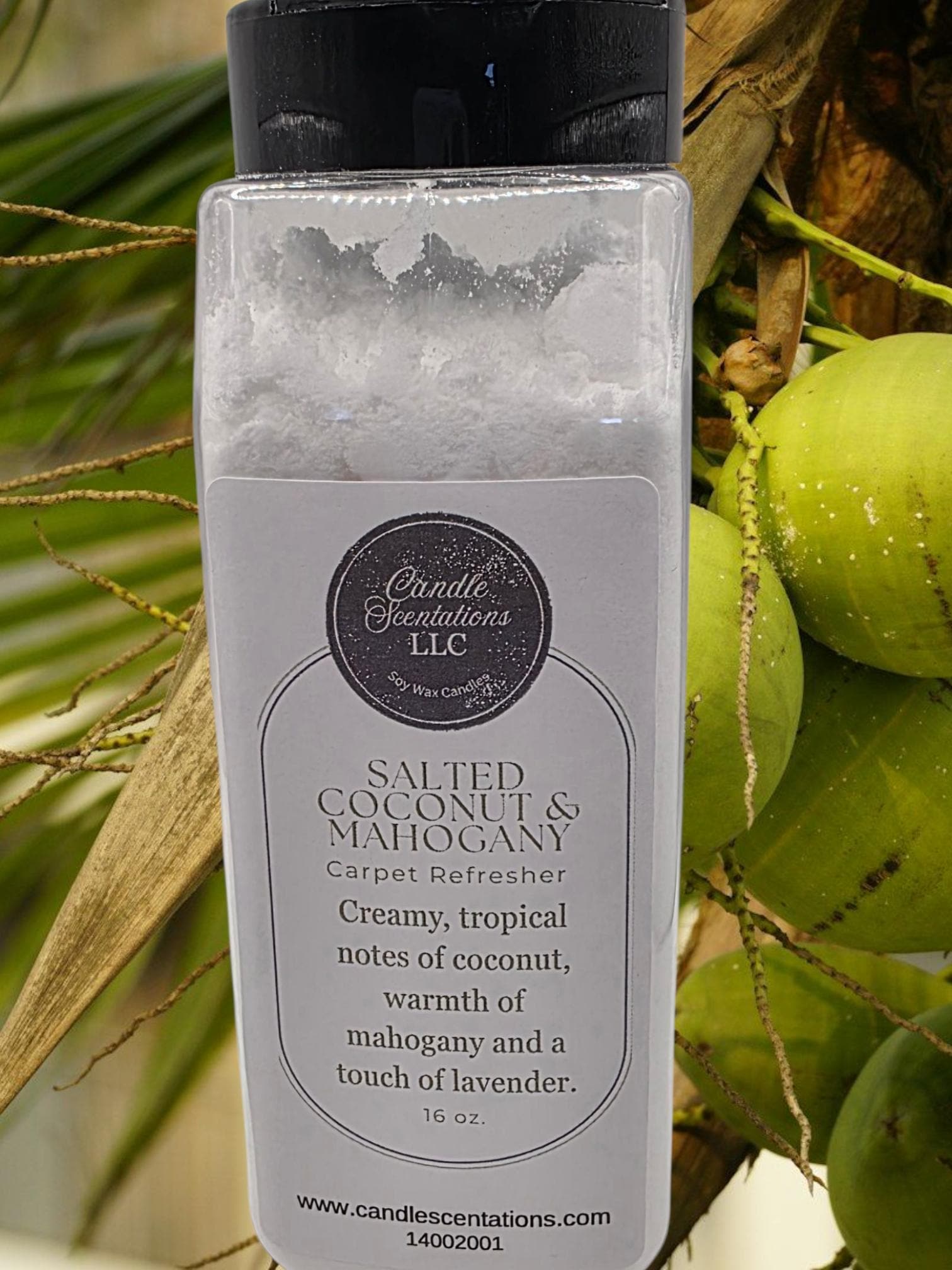 Experience the luxurious blend of creamy, tropical coconut softened by the rich warmth of mahogany and a subtle hint of lavender. This 16 oz. Salted Coconut & Mahogany Carpet Refresher revives your home’s ambiance with elegance, leaving carpets refreshed and delicately scented. Ideal for uplifting your living spaces while imparting a refined, soothing aroma.